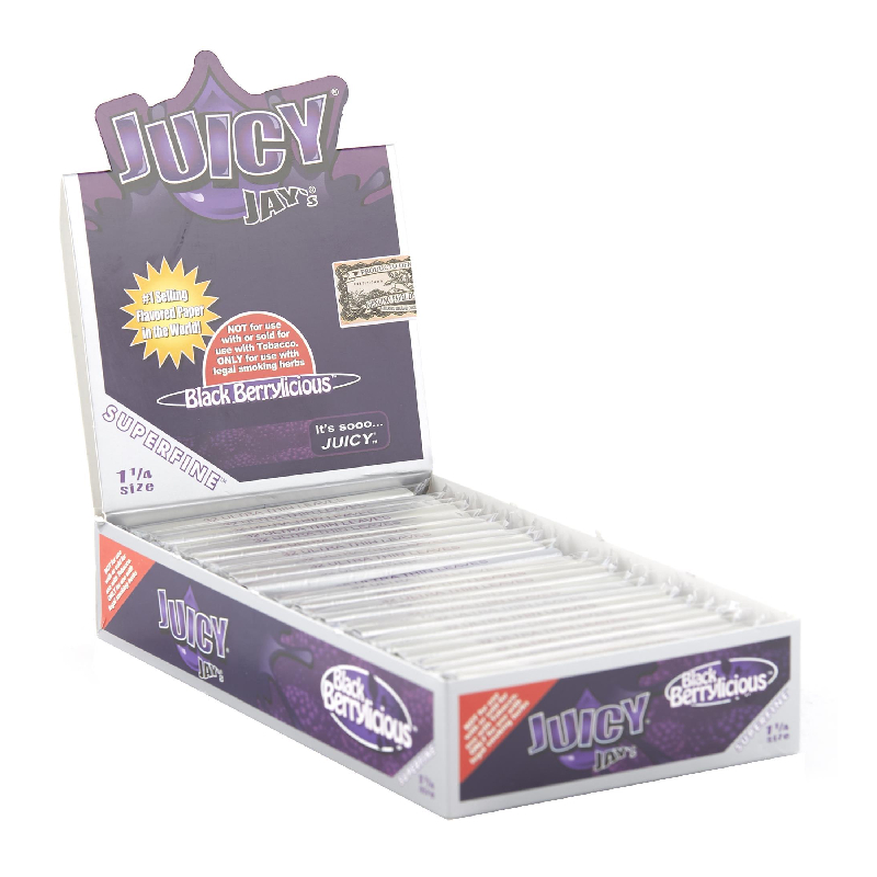 JUICY JAY 1.25 BLACK BERRYLICIOUS (SUPER FINE) FLAVORED ROLLING PAPER 24 PER BOX