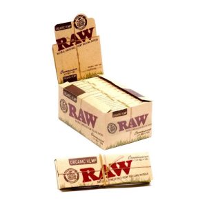 RAW 1.25+TIPS ORGANIC HEMP CONNOISSEUR ROLLING PAPERS 24 PER BOX